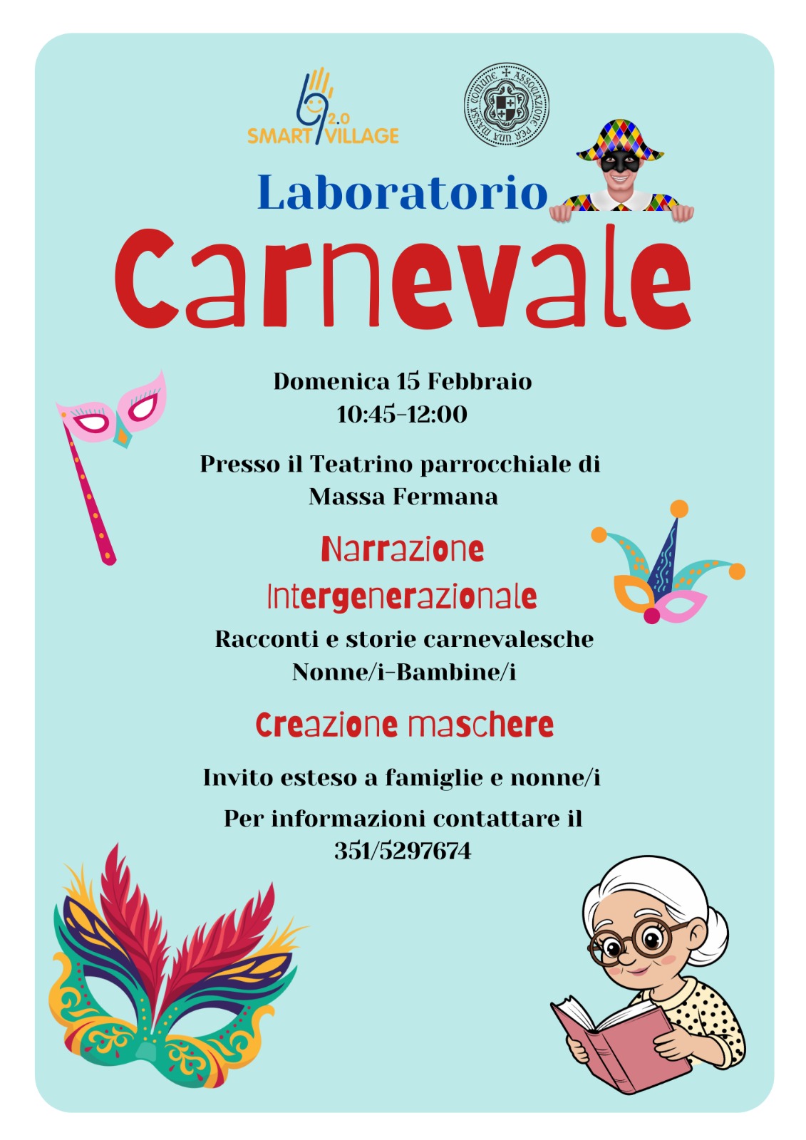 Iniziativa promossa da Smart Village 2.0 e dall’Associazione "Per una Massa Comune" che si terrà domenica 15 febbraio dalle ore 10:45 alle ore 12:00, in occasione del Carnevale, presso il teatrino parrocchiale di Massa Fermana.